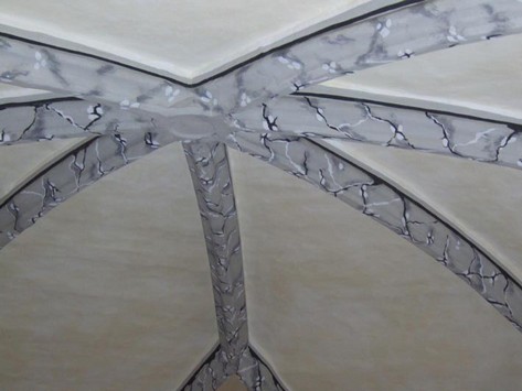 Grundierung der Rippen und Maßwerkfenster in Kalktechnik