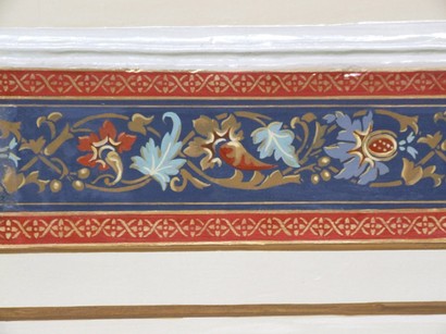 Detail der marmorierten Kassetten, unten retuschiertes Primärdokument, oben Rekonstruktion